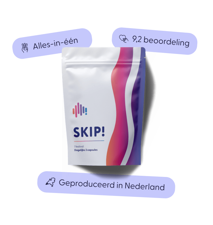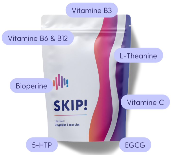 Vitamin B3 supports mental resilience and balance after an intense festival. It helps the nervous system function normally* and contributes to mental clarity and focus*. Additionally, it reduces tiredness and fatigue*, which speeds up your recovery after a busy weekend.